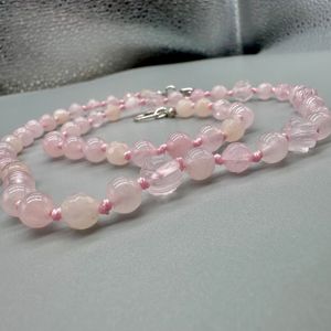 Product details for 19” rose quartz - beaded gemstone necklace // lobster claw s....