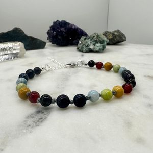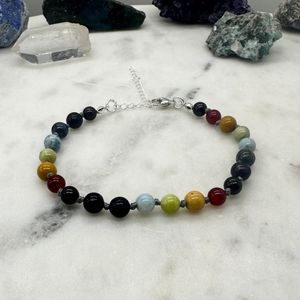 Product details for 8"-9.5" adjustable gemstone bracelet // darkspicy rainbow //....