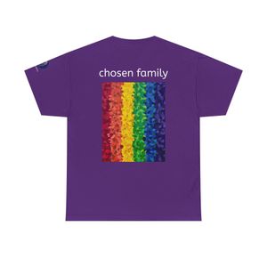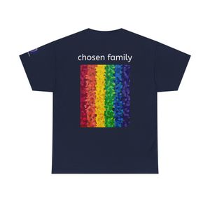 Product details for Chosen Family Rainbow Tee - LGBTQIA Pride Art, Unisex Cotton.